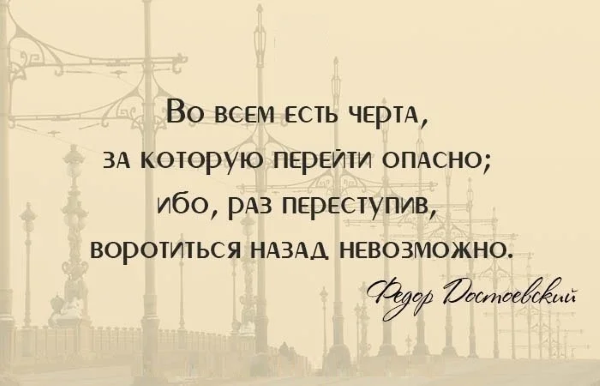 «Во всём есть черта, за которую перейти опасно, ибо, раз переступив, воротиться назад невозможно»